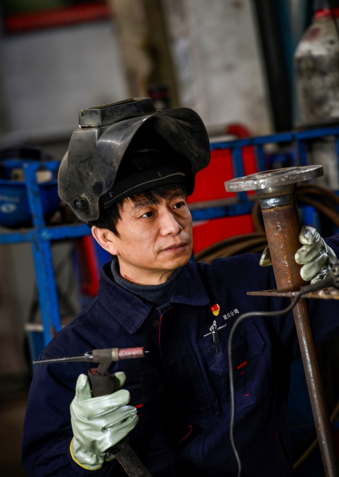 弧光闪闪,照亮前行的路,侯兆滨凭着对焊接事业的热爱,从业30年来一直默默地坚守在生产第一线,不断探究焊接工艺方法的创新,他参与技术革新20余项,小改革、小发明近100项,为公司节约成本200 余万元,还手握三项国家授权专利技术。其中以他的名字命名的“侯兆滨压力容器自动焊操作方法”将原来6小时工期缩短到40分钟,生产效率提升10倍,降低成本40%;另一项创新成果“16MnDR低温压力容器封头拼接焊缝焊接方法”能提高生产效率5倍,降低成本20%,这些创新项目为国家的焊接事业贡献了巨大的力量。