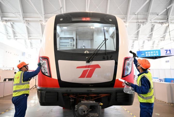 2023年9月17日,在国家会展中心(天津)举办的中华人民共和国第二届职业技能大赛进入第二天,参赛选手在参加轨道车辆技术项目比赛。新华社记者 赵子硕 摄