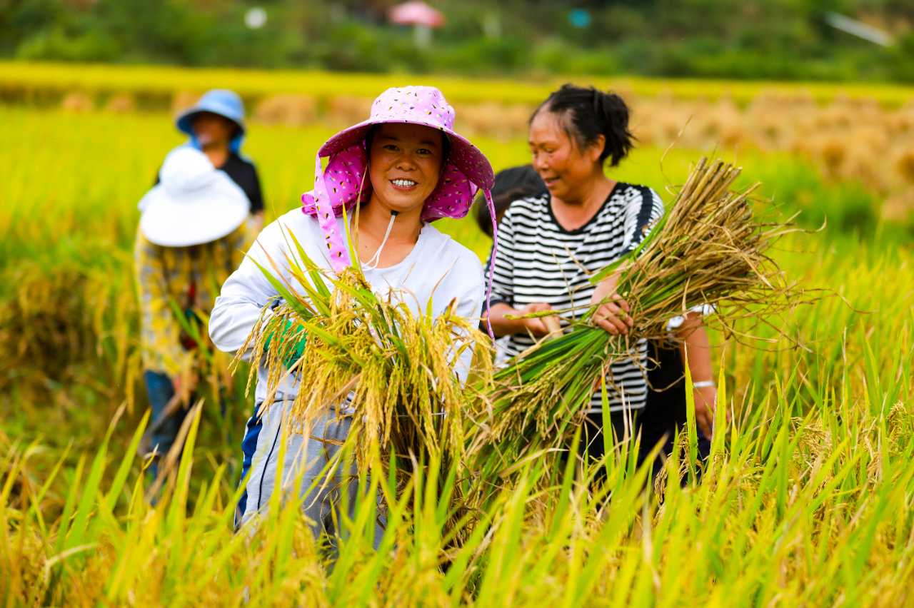 贵州省黔西市永燊彝族苗族乡新寨村的“邻里帮帮团”,在田间抢收稻谷。时下,贵州省黔西市永燊彝族苗族乡稻谷秋收进入关键时期,当地农户组成“邻里帮帮团”,相互之间抢收稻谷,助力秋收。