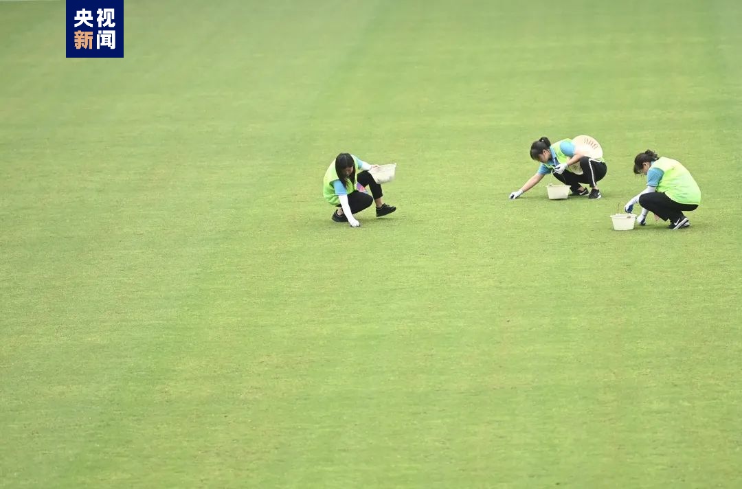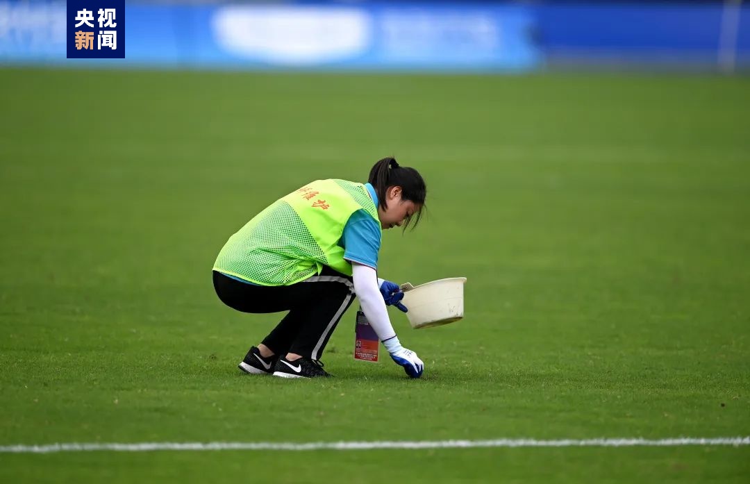 9月19日晚场比赛结束,运动员退场后,何东奇和草皮维护组的伙伴们立刻进场,开始对整个场地的草坪进行巡查修整。9个人一直工作到夜里12时多,完成了赛后草坪维护保养工作,“我回到驻地洗完澡休息已经1:30了。”陈庆玉说道。