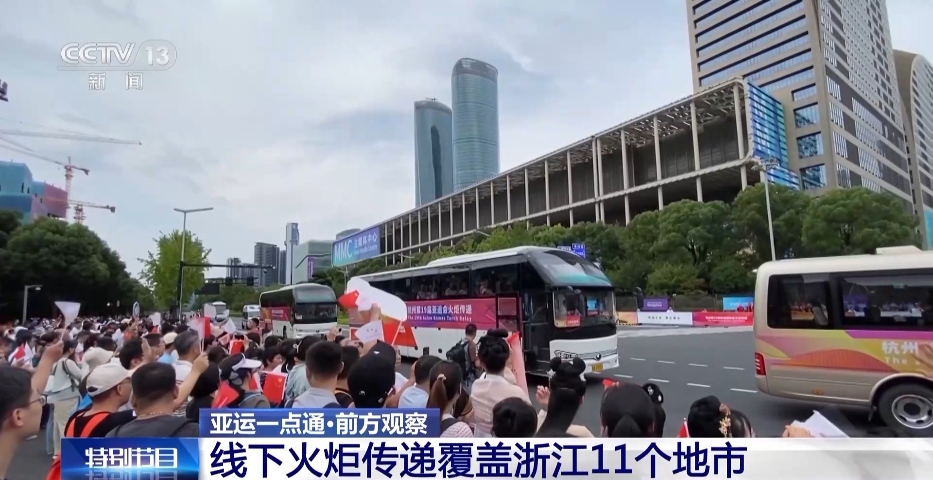 说到亚运氛围,这几天记者在杭州和周边城市也深有体会。比如说火炬传递,前两天记者就赶上了一个传递现场,就在主媒体中心不远的地方,很多市民自发地站在马路边,为火炬手加油,当中还有不少家长抱着年龄还很小的孩子在围观。还有不少地区,像宁波作为协办城市,借着亚运会、借着火炬传递的气氛,开展了单人桨板、跑步等市民可以共同参与的活动,可以说是亚运气息浓厚,运动氛围热烈。