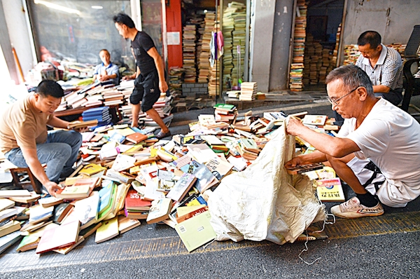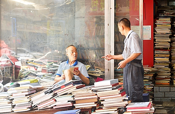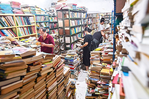 武昌武珞路首义旧书坊,读者在书堆里淘宝