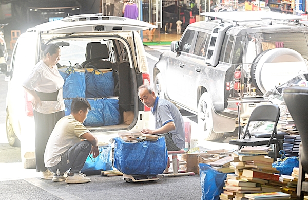 9月16日上午9时,首义旧书坊照例开门营业,等候多时的旧书送货商从车里卸下成捆的旧书。老板孙跃先不紧不慢地坐在小板凳上将旧书放到秤上,待称完后,一旁的旧书迷、来自三镇的旧书店经营者迫不及待地开启淘宝之旅。