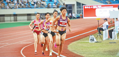 日前,“迎亚运 共青春”2023年全国田径接力锦标赛在浙江绍兴上虞举行,中国田径队选手通过比赛为亚运会热身。图为女子成年组4×800米接力决赛。贺陶摄(影像中国)