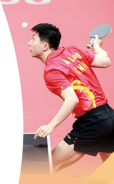 9月22日,中国队选手马龙在杭州亚运会乒乓球男子团体小组赛A组比赛中发球。新华社记者 刘续摄