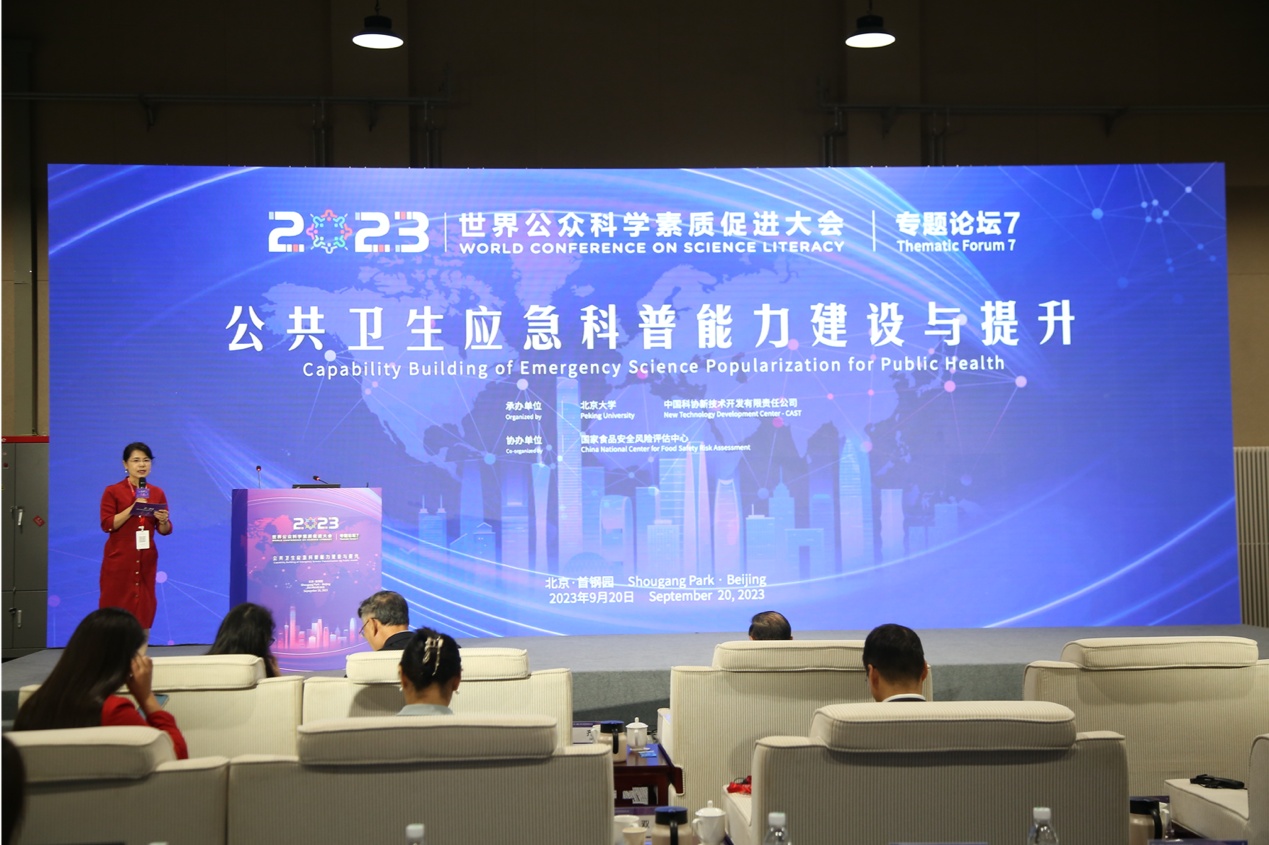 9月20日,2023世界公众科学素质促进大会“公共卫生应急科普能力建设与提升”专题论坛在北京举办。此次论坛由中国科协、中国科学院、北京市人民政府共同主办,北京大学、中国科协新技术开发中心有限责任公司联合承办,国家食品安全风险评估中心协办。