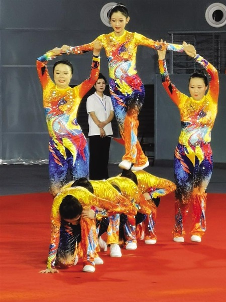 记者在比赛现场看到,伴随着轻快昂扬的音乐,身着五彩华服的各支参赛队伍依次登场,在率先进行的有氧规定操项目中大展舞技,将一场充满激情的健美操盛宴展现在现场观众和评委面前。在随后进行的有氧自编操项目中,各参赛队纷纷拿出精心编排的绝活,一场融合了嘻哈、爵士、街舞等多种风格的视觉盛宴将现场气氛一次又一次地推向高潮。