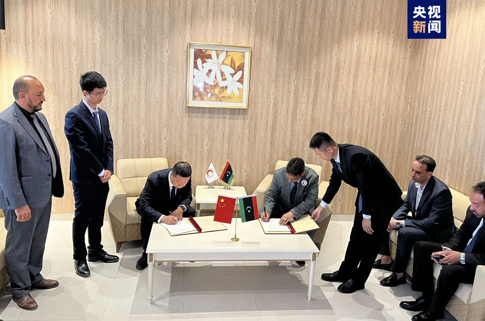 2023年9月24日,中国政府援助利比亚紧急人道主义物资运抵利东部城市班加西。中国驻利比亚使馆临时代办刘健、利比亚驻华使馆临时代办哈立德,利比亚红新月会秘书长奥马尔前往机场迎接并出席交接仪式。