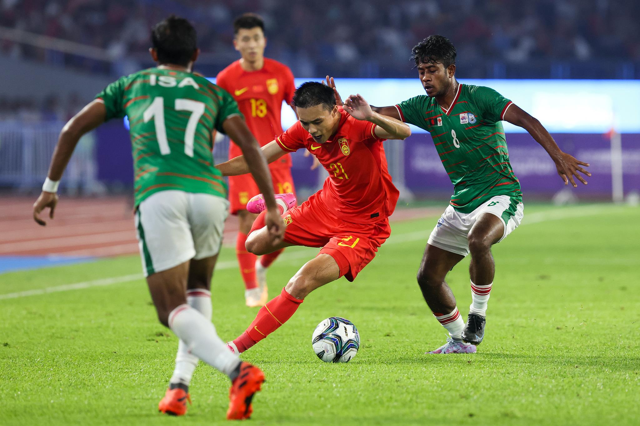 原标题:亚运会男足小组赛中国队0比0战平孟加拉国队