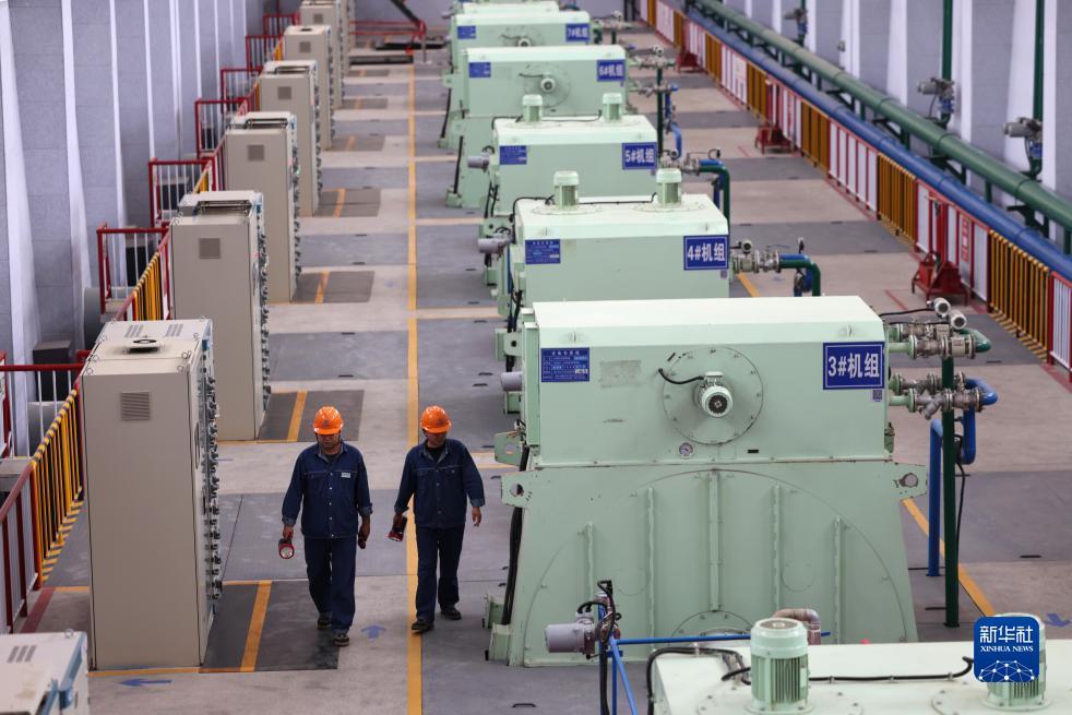 工作人员在宁夏红寺堡扬水管理处红三泵站进行巡检(9月7日摄)。