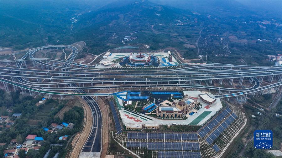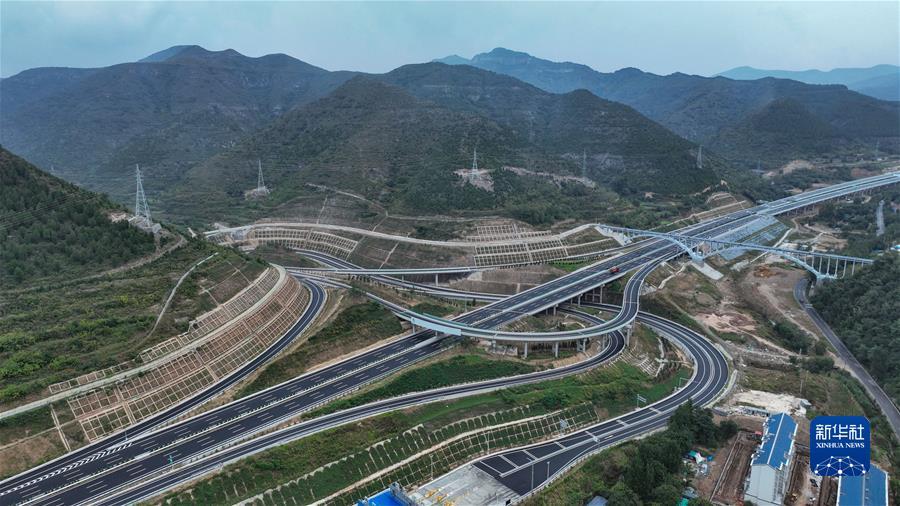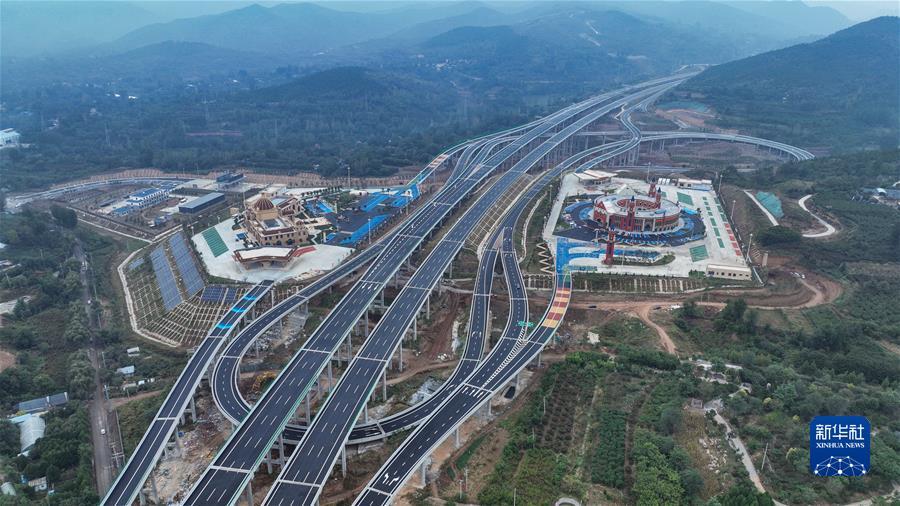 9月24日在山东省青州市拍摄的济青高速济潍段仰天山互通立交(无人机照片)。