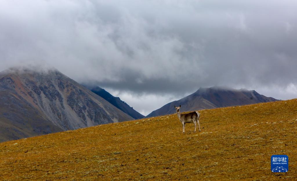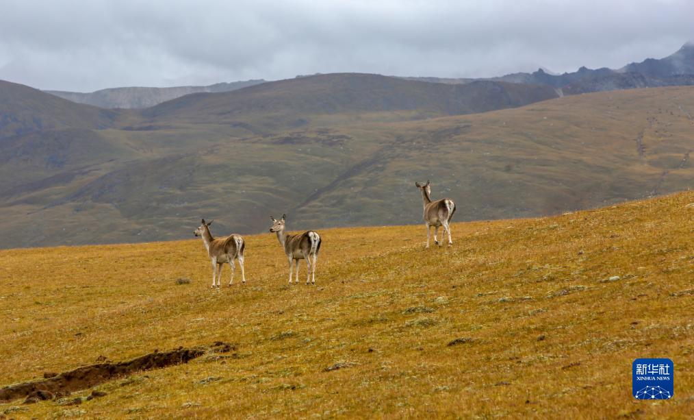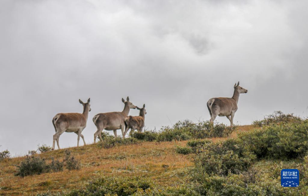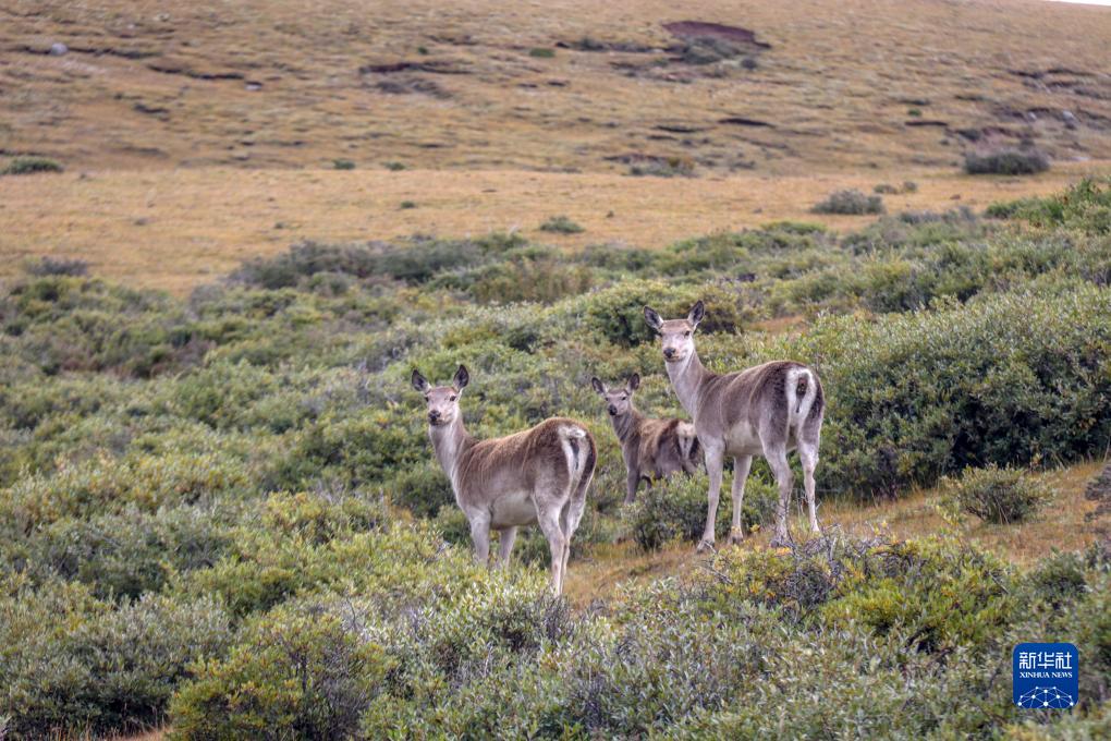 9月24日,几只西藏马鹿出现在位于西藏自治区山南市桑日县的贡德林草原上。新华社记者 邵泽东 摄