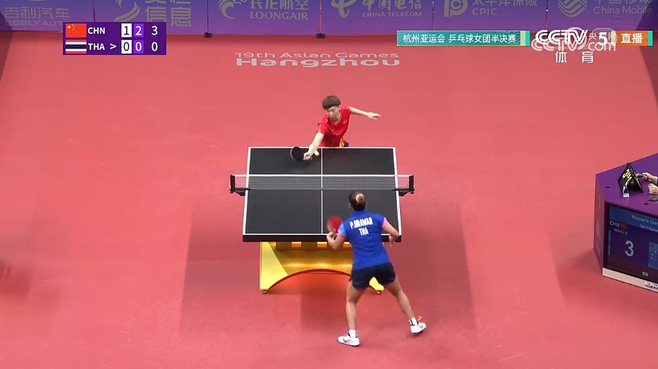 9月25日,杭州第19届亚运会乒乓球女团半决赛,中国队战胜泰国队进入决赛。