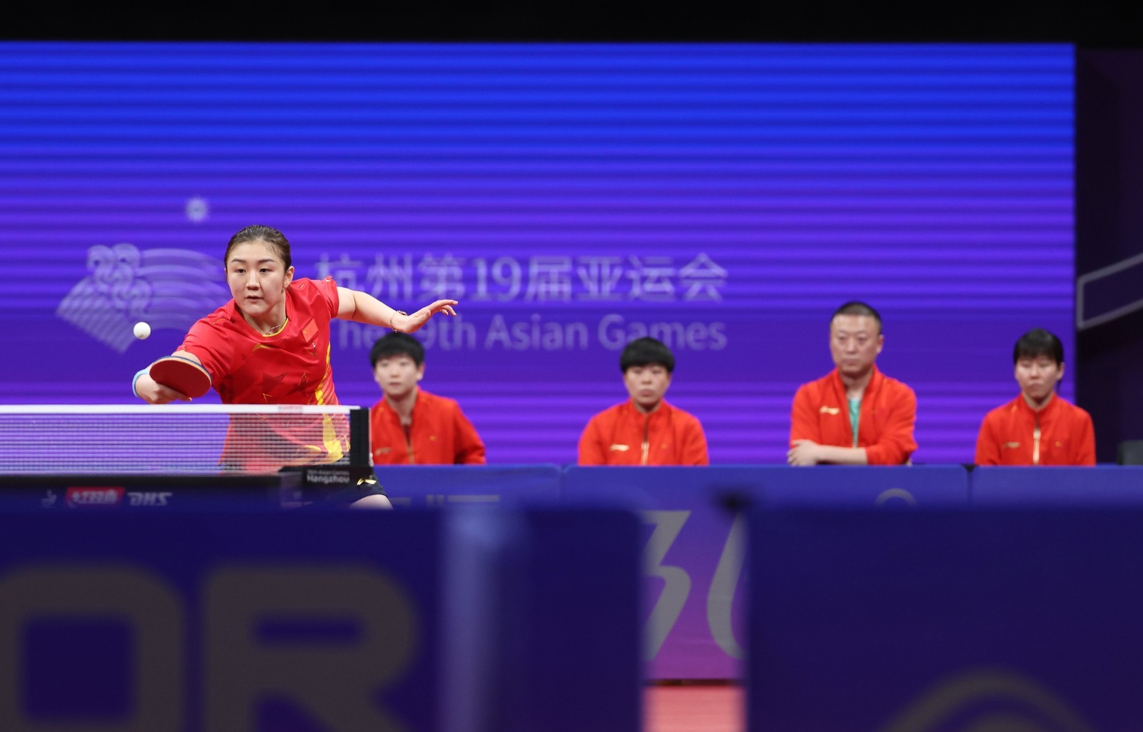 9月26日,杭州亚运会乒乓球女团决赛在拱墅运河体育公园体育馆进行。由孙颖莎、陈梦和王曼昱组成的中国队以3-0击败由早田希娜、平野美宇和张本美和组成的日本队,取得五连冠。