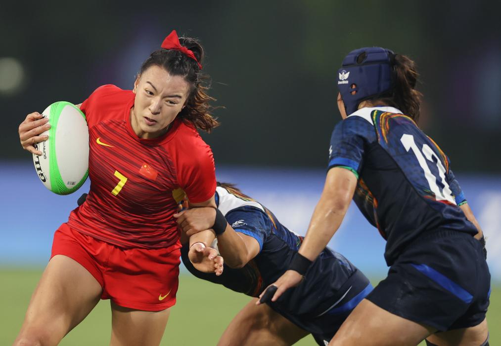 新华社杭州9月26日电(记者季嘉东)当日本选手冲向中国队的达阵区时,陈可怡像一道红色闪电疯狂回追,刹那间将球踢出底线。中国队赢了!