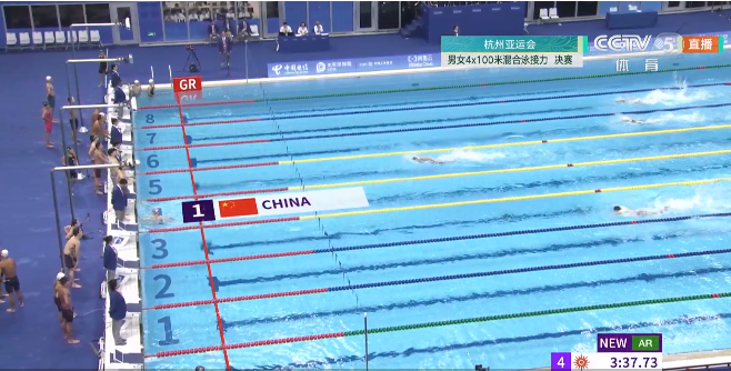 9月27日,杭州第19届亚运会男女4×100米混合泳接力决赛,中国队夺得金牌,打破亚洲纪录。