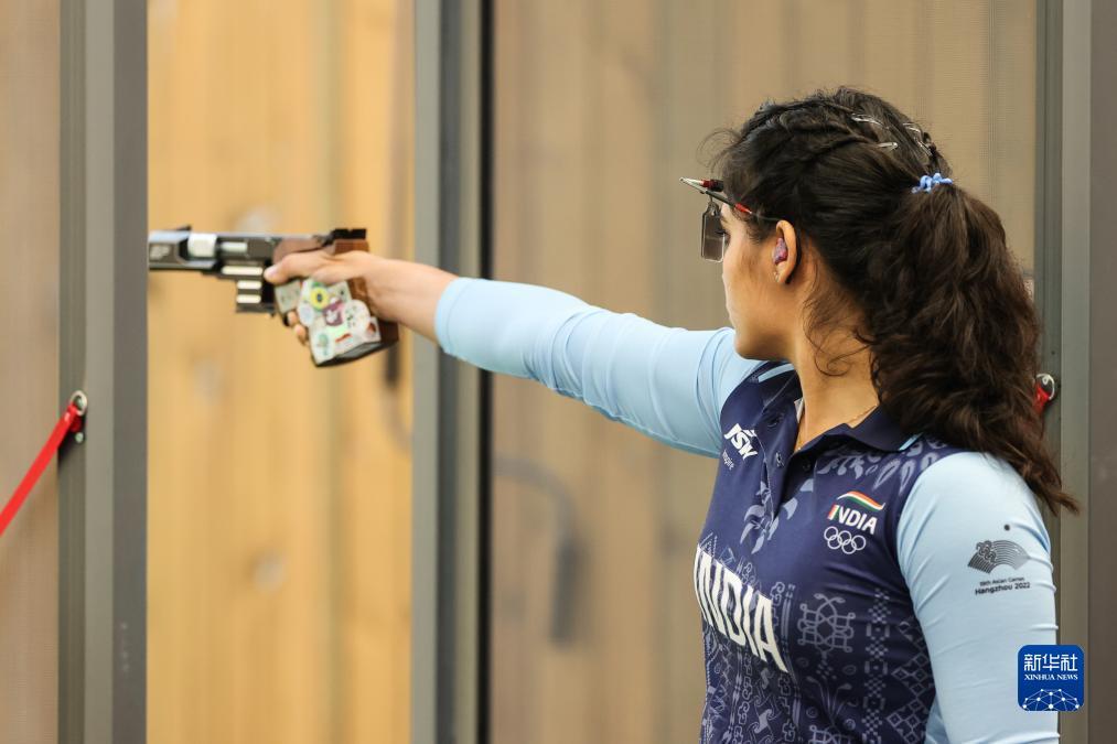 9月27日,印度队选手玛努·巴克尔在比赛中。印度队以1759环的总成绩夺得金牌。新华社记者 单宇琦 摄