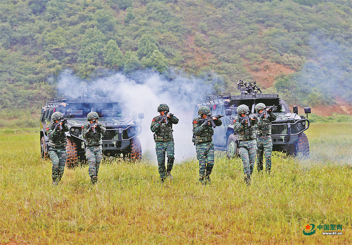 “突击!”指挥员一声令下,某型无人机携带弹药腾空而起,扑向目标地域实施“点穴”式击杀。随后,在机枪手火力掩护下,官兵搭乘突击车对“敌”营地发起武力清剿,势如猛虎,一举获胜。