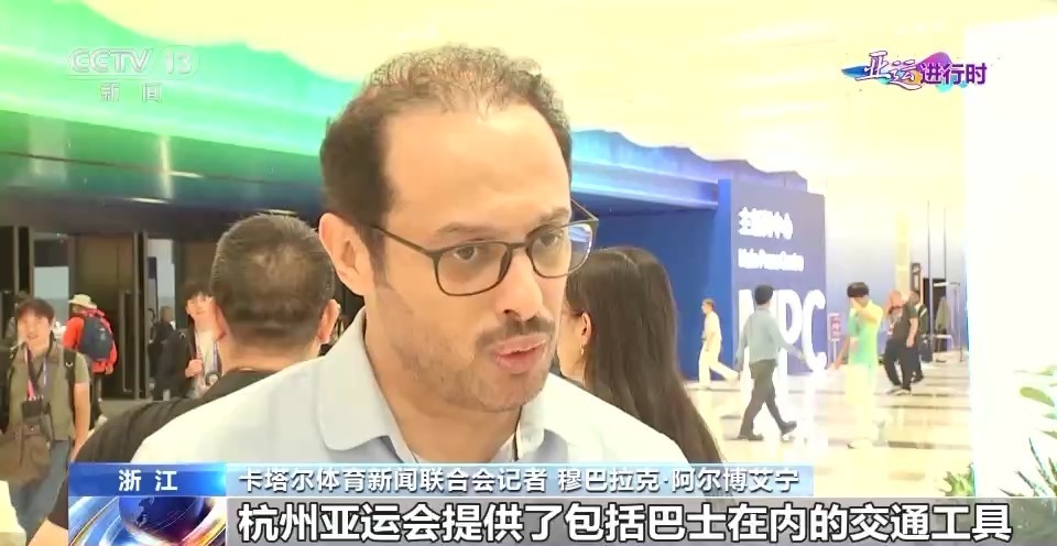 卡塔尔体育新闻联合会记者 穆巴拉克·阿尔博艾宁:杭州亚运会提供了包括巴士在内的交通工具,方便大家去体育场和新闻中心,这很棒,因为媒体朋友们不愿在不同场地的交通上花费太多时间,这次亚运会提供的交通运行十分便利和顺畅,而且杭州的天气也很好,我们非常享受这里。