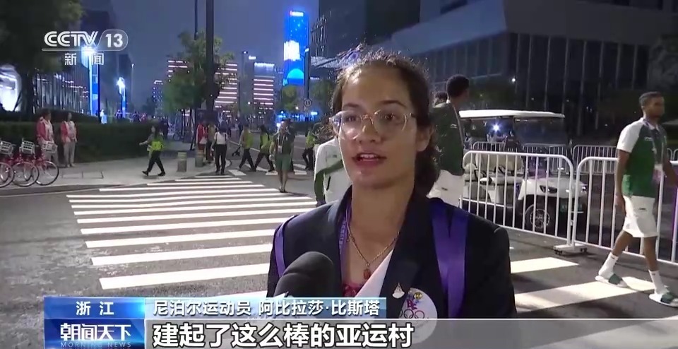尼泊尔运动员 阿比拉莎·比斯塔:中国为来参赛的运动员建起了这么棒的亚运村,这一定将是一次非常成功的盛会,中国为我们做好了准备, 一切都很完美。
