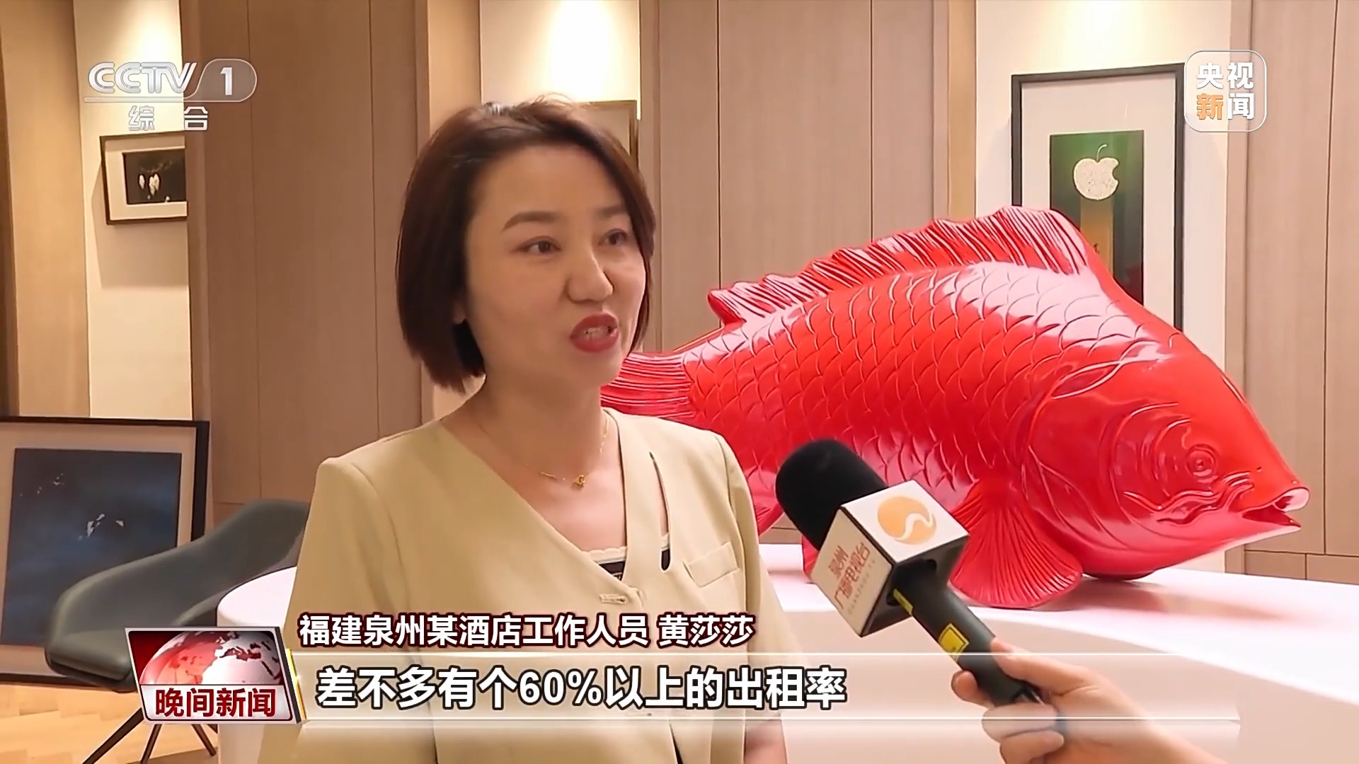 福建泉州某酒店工作人员 黄莎莎:从29日节假日开始到6日,差不多有60%以上的出租率,但是预订还在持续,节前一周是一个预订的高峰,应该是可以满的。
