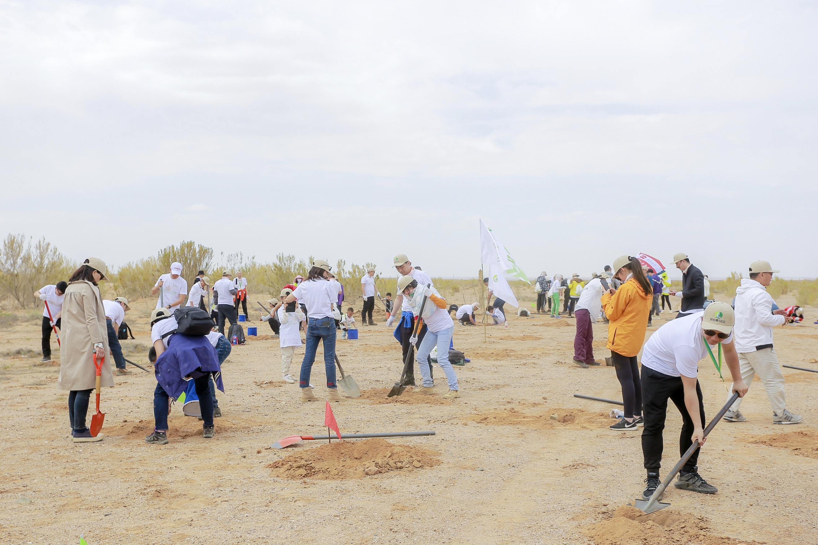 捐赠人、志愿者等参与“一亿棵梭梭”项目春种