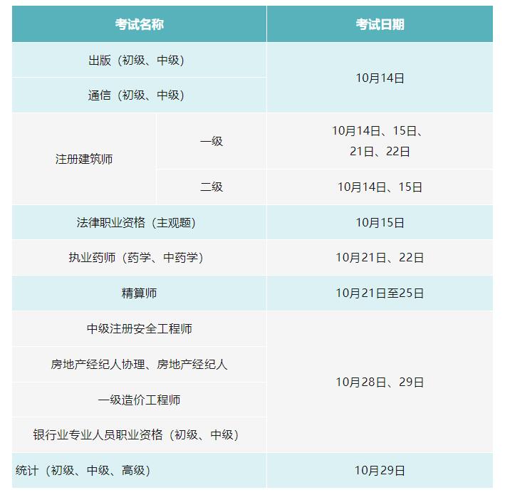 要考证的小伙伴看过来,10月专业技术人员职业资格考试时间表来啦,别错过!