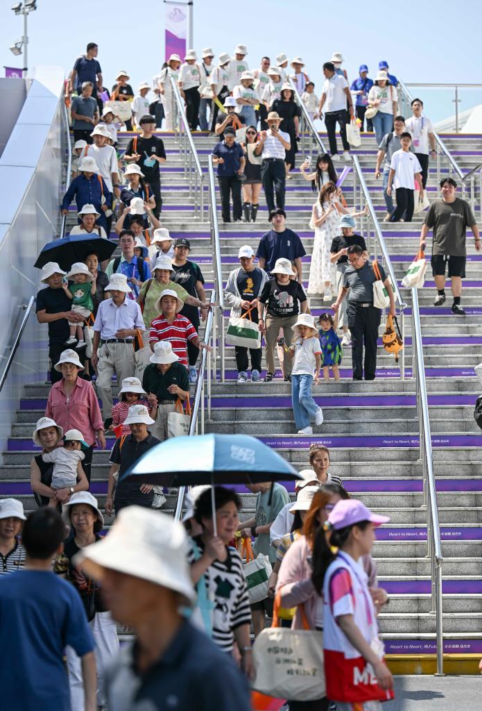 9月27日,观众从淳安界首体育中心自行车馆离开。新华社记者 胡虎虎 摄