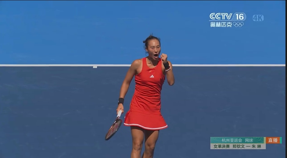 9月29日,杭州第19届亚运会网球女子单打决赛,中国选手郑钦文夺得金牌。