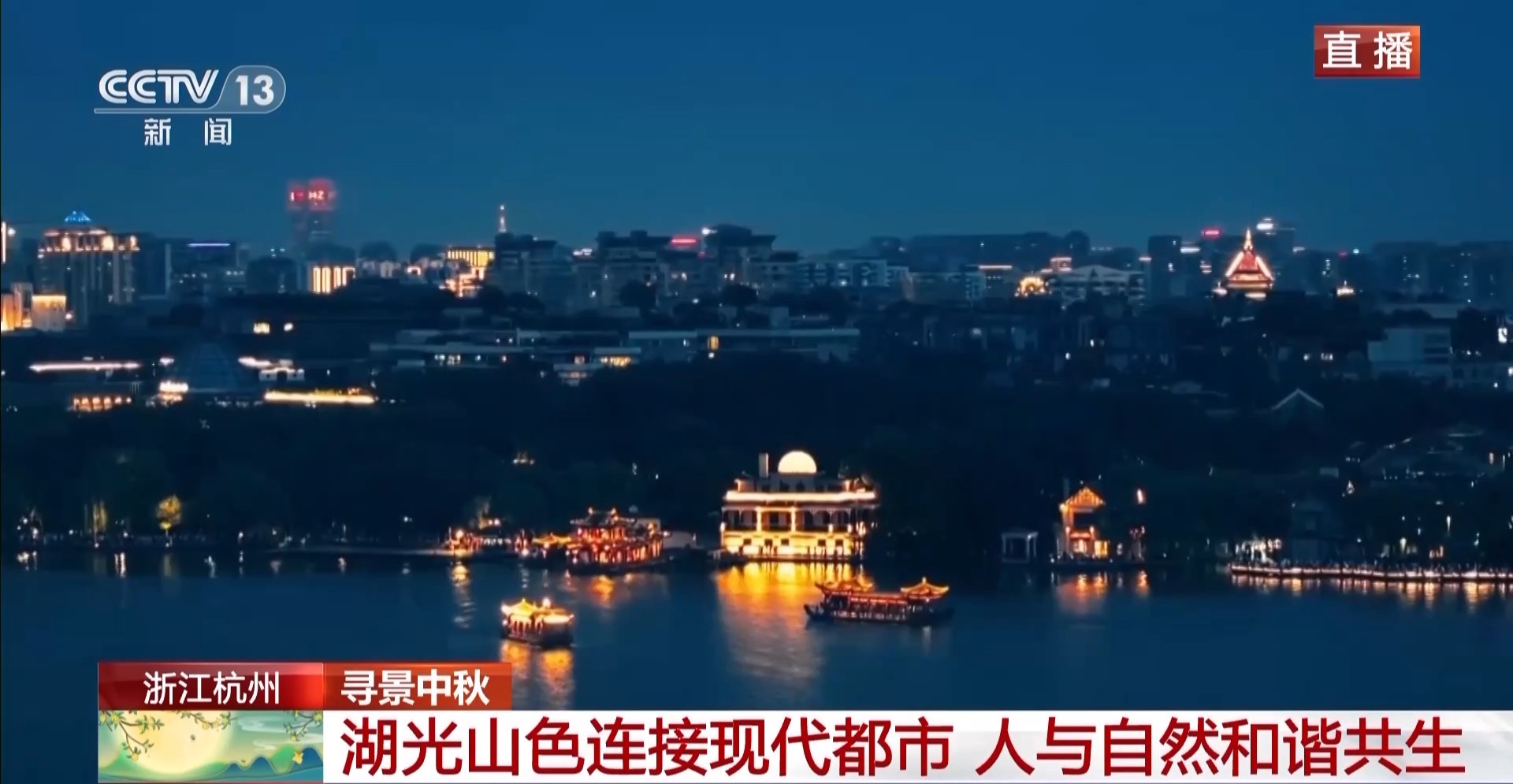 总台记者 李欣蔓:中秋游西湖,夜景是一定不能错过的。西湖周边灯光这一次也进行了提升改造,整体以光为墨,结合山水、亭台、楼阁等西湖元素,勾勒出水墨淡彩的杭州韵味。杭州是懂浪漫,不仅让你看到,还要让你闻到。这个季节来到杭州,满满的桂花香味,整个杭城都是香喷喷的。