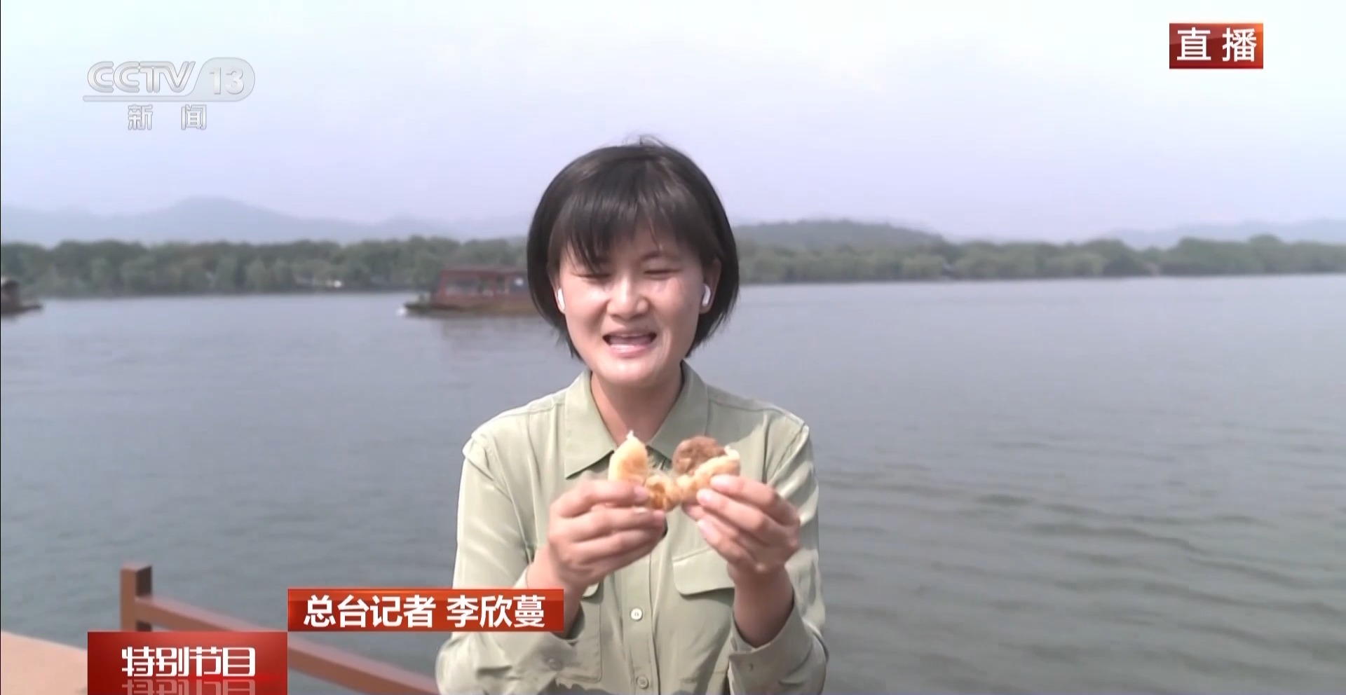 总台记者 李欣蔓:说到美食,怎么能不吃月饼,虽然说现在月饼的种类越来越多,我上午刚刚买到杭州人最爱吃的榨菜肉月饼,香酥的饼皮加上饱满的榨菜肉馅,一口下去真是满满的幸福感。