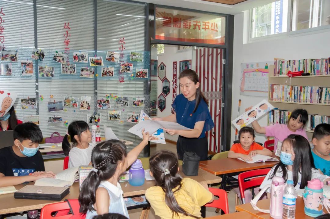 2022年7月,在乐山社区开办的职工子女暑假托管班上,谭欣和孩子们交流。