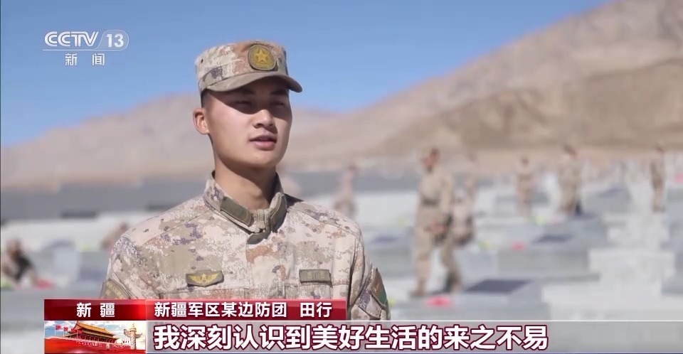 新疆军区某边防团 田行:通过今天的祭奠活动,我深刻认识到美好生活的来之不易是革命老前辈们用生命和鲜血换来的,我们必将牢记卫国戍边神圣使命,继承和弘扬喀喇昆仑精神,用实际行动践行“大好河山 寸土不让”的铮铮誓言。