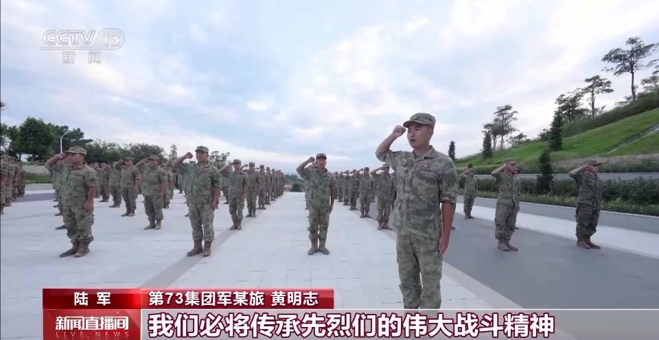 在第71集团军某旅,官兵们向在对外作战和解放战争以及非战行动中牺牲的3852名烈士和69名战斗英雄默哀、缅怀、致敬。面向鲜红的军旗,官兵们重温军人誓词,一句句铮铮誓言表达了官兵们传承英烈精神、矢志强军兴军的坚定决心。