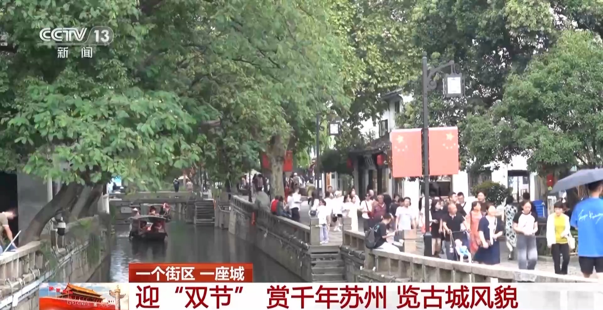 国庆长假期间,平江路热闹非凡,游客们走在古朴的石板路上,逛沿河市集、品特色美食、听苏州评弹、赏小桥流水,还不时驻足拍照,漫步古城街巷间,领略江南的千年风雅和市井烟火。这个假期,苏州平江历史文化街区预计将接待游客58万人次,同比增长45%左右。