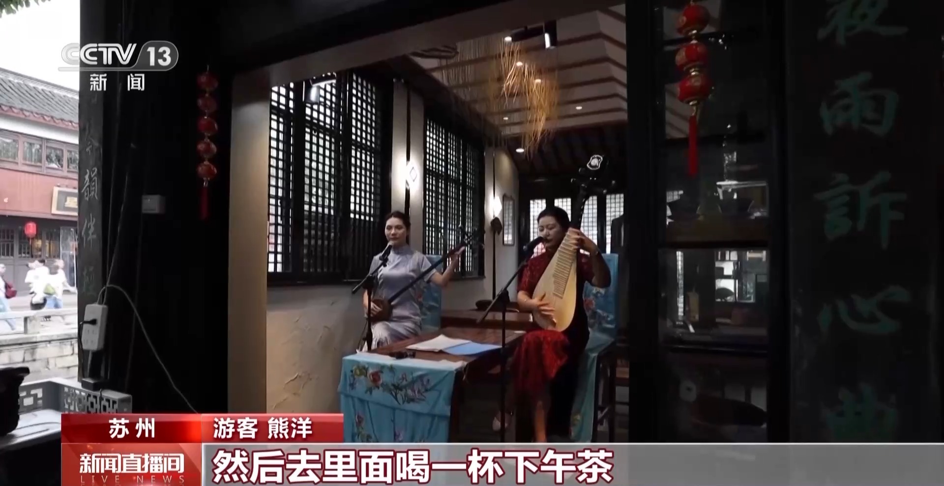 游客 熊洋:平江路这边有江南水乡的气韵,我就想来这边体验一下江南的风土人情,找一家在河边的评弹小店,去里面喝一杯下午茶,然后听着小曲,度过一个惬意的下午时光。