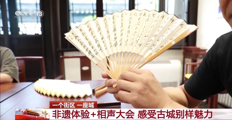 总台央视记者 郑玮玮:作为老宅焕新打造、活化利用的典型代表,大儒巷38号成为姑苏文化的新地标。经过修缮提升后,这里是一个对外开放的特色文化空间。在古色古香的院落中,游客们不仅可以参与互动非遗体验,还能观看评弹演出和相声大会,深度体验南北文化的融合。