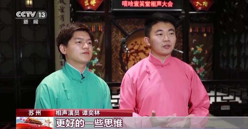 相声演员 谭奕林:加一些不同的包袱或者是一些不同的技巧,让这个节目更成熟,更适合我们剧场。真的是非常感谢这边文化部门的一个扶持。也希望能够用更年轻的生命力,更好的一些思维,把这门艺术做好,在苏州土壤里生根发芽开花结果。