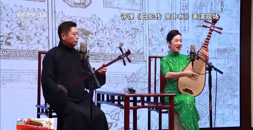 苏州市评弹团评弹演员 国家二级演员 蔡玉良:唱了一个白蛇传的选曲《赏中秋》,也叫游山塘,讲的就是许仙跟白娘子在8月中秋去游玩虎丘,在山塘街租了一条小船,然后在船上度过的一段美好时光。