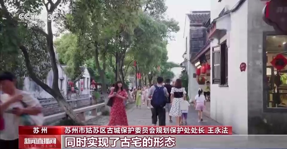 苏州市姑苏区古城保护委员会规划保护处处长 王永法:苏州的古城保护通过对文物建筑古建老宅的活化利用,我们保持了古城的烟火味,同时实现了古宅的形态,产业的业态,文化的神态,以及古城的生态四态合一的融合,形成了我们名城苏州的特色。