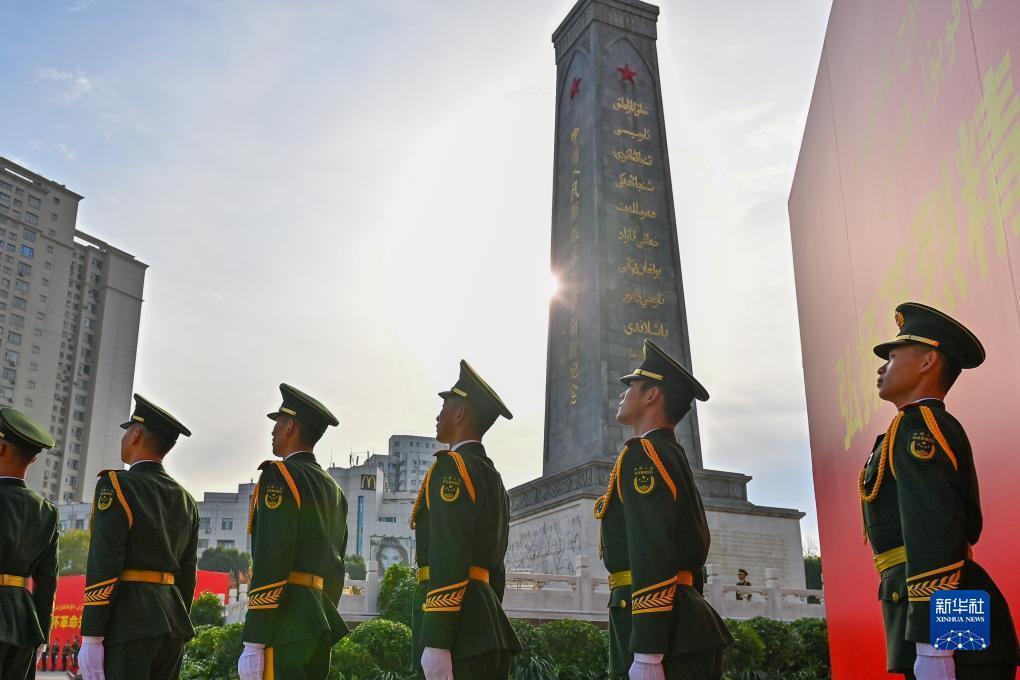 9月30日,新疆维吾尔自治区烈士纪念日向人民英雄敬献花篮仪式在乌鲁木齐市人民广场举行。