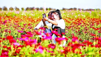辽宁省辽河文化旅游景区,花海醉游人。新华社发