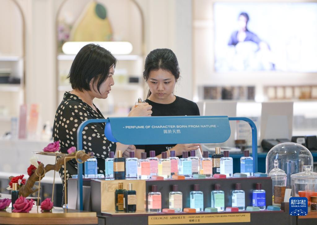 9月29日,消费者在中免集团海口日月广场免税店选购商品。