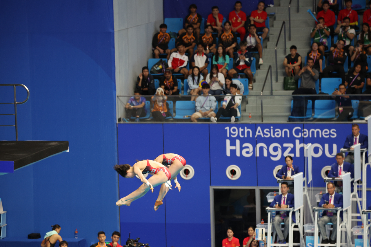 原标题:全红婵、陈芋汐获亚运会双人10米台冠军