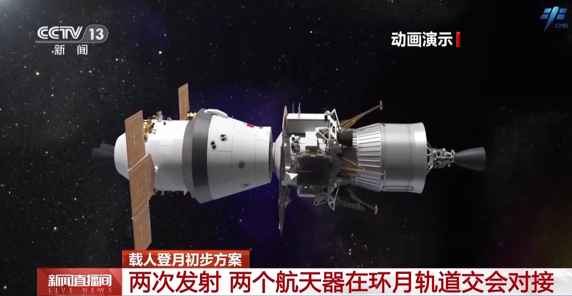 载人登月初步方案:两次发射 两个航天器在环月轨道交会对接
