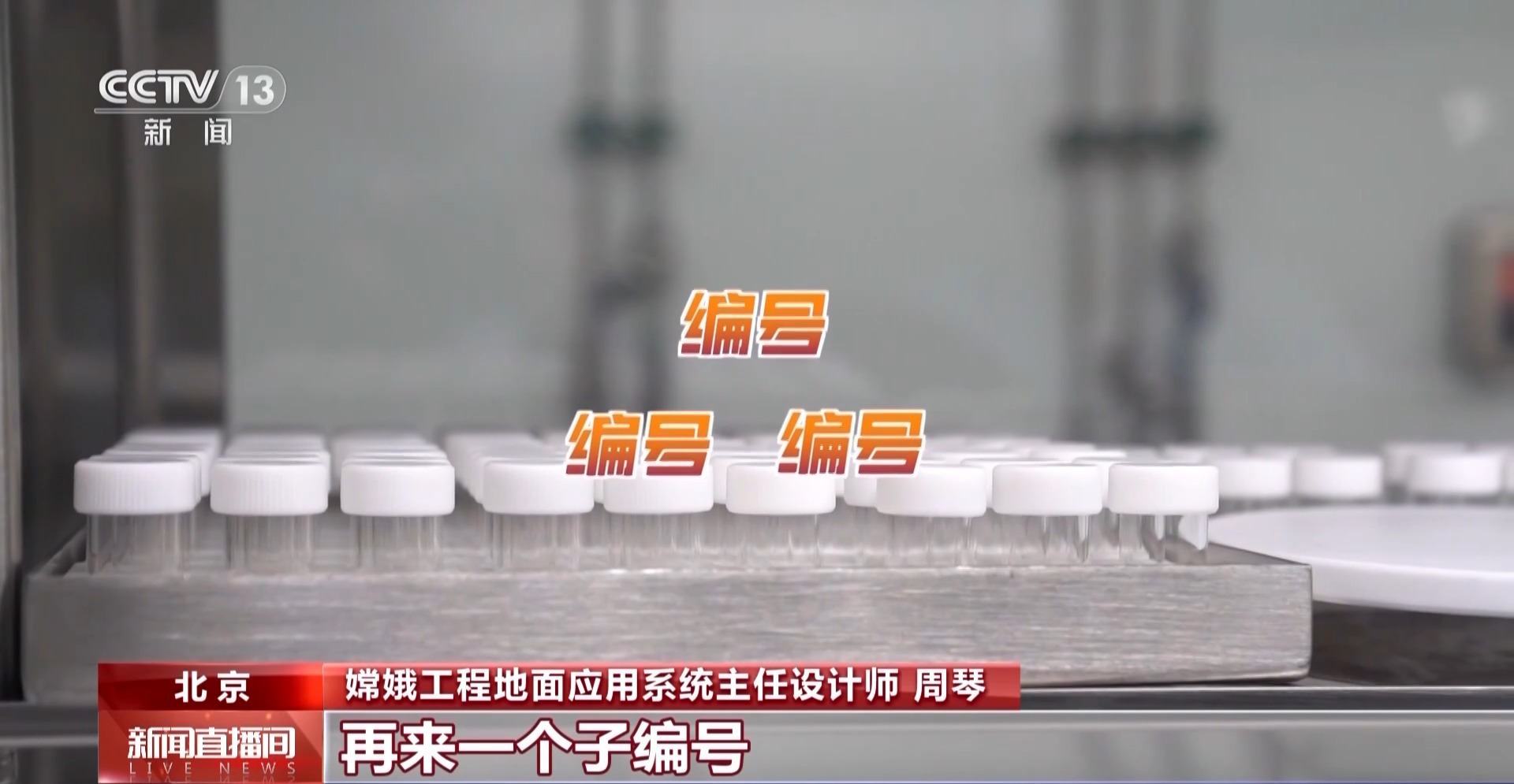 嫦娥工程地面应用系统主任设计师 周琴:它全都分好了,你看我们下面是10个,上面那个瓶子也是10个,每一罐都是10克的样品。