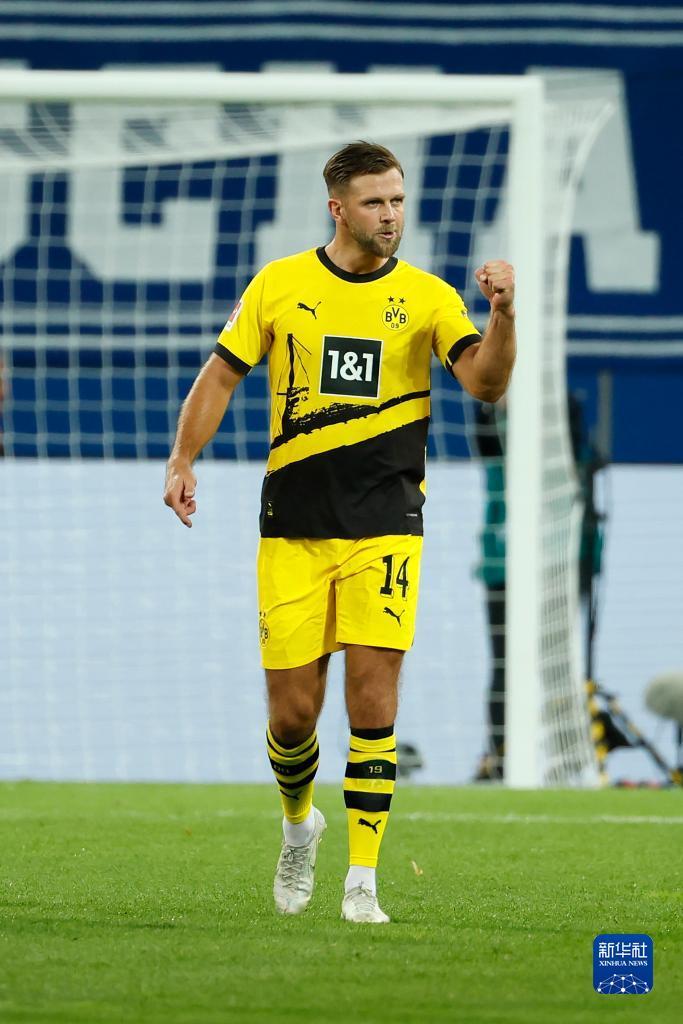 9月29日,多特蒙德队球员菲尔克鲁格进球后庆祝。新华社发(约阿希姆·毕瓦勒兹 摄)