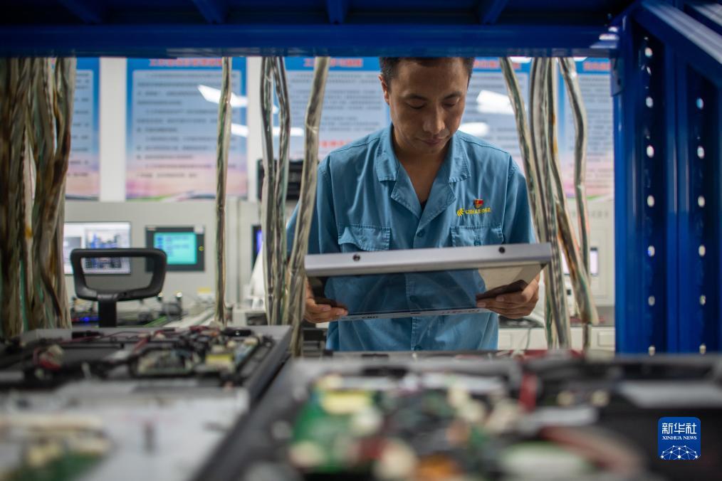 马耀锋在检查动车组故障配件的修复情况(9月27日摄)。