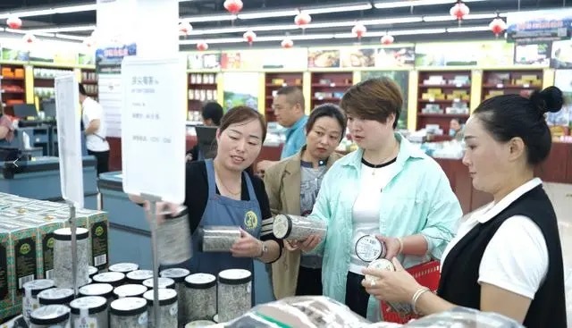 “您可以看看这款莓茶,是我们张家界的特色产品。” “双节”假期第一天,走进湖南印象土特产专卖店,店员们正在热情招待前来购买土特产的游客们。