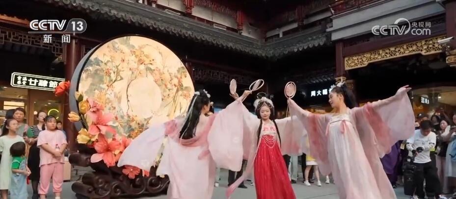 在上海豫园,圆月、花朵造型,结合多彩的灯光效果,打造秋月古风浪漫场景,一场“仲秋月神游”活动吸引了不少市民游客共享中国文化之美。古风演出、荷灯祈愿、吟诗互动、集章打卡,多元活动打造消费新场景、吸引新客群。